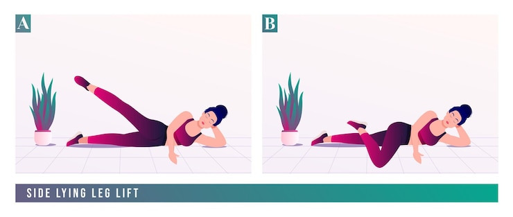 - 사이드 레그 리프트: 옆으로 누워 무릎을 펴고, 다리를 수직으로 들어 올리는 동작입니다. 고관절의 근력을 기르는 데 효과적입니다.