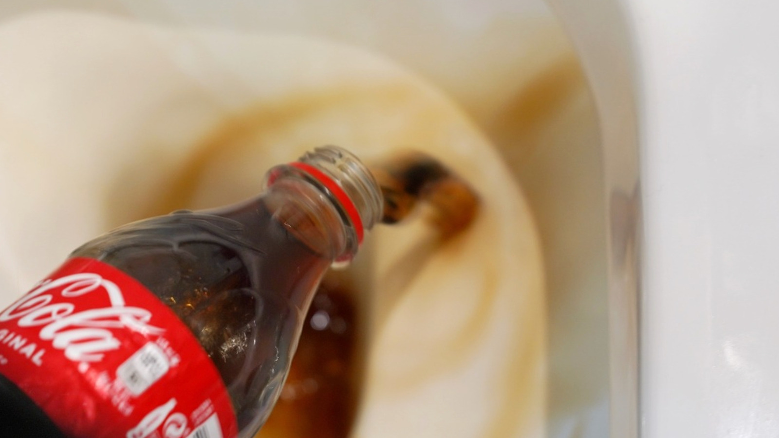 - 변기통에 김 빠진 콜라를 부어줍니다.