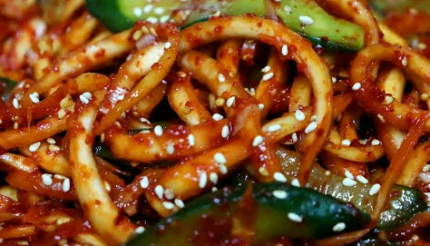 - 오이와 양파: 각각 100g이 사용되며, 도라지와 비슷한 크기로 썰어 주요한 아삭한 식감을 제공합니다.
