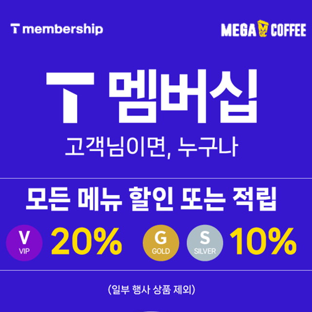 통신사 멤버십을 통해서도 메가커피의 할인 혜택을 누릴 수 있습니다. SKT와 KT 사용자를 위한 멤버십 할인은 다음과 같이 제공됩니다: