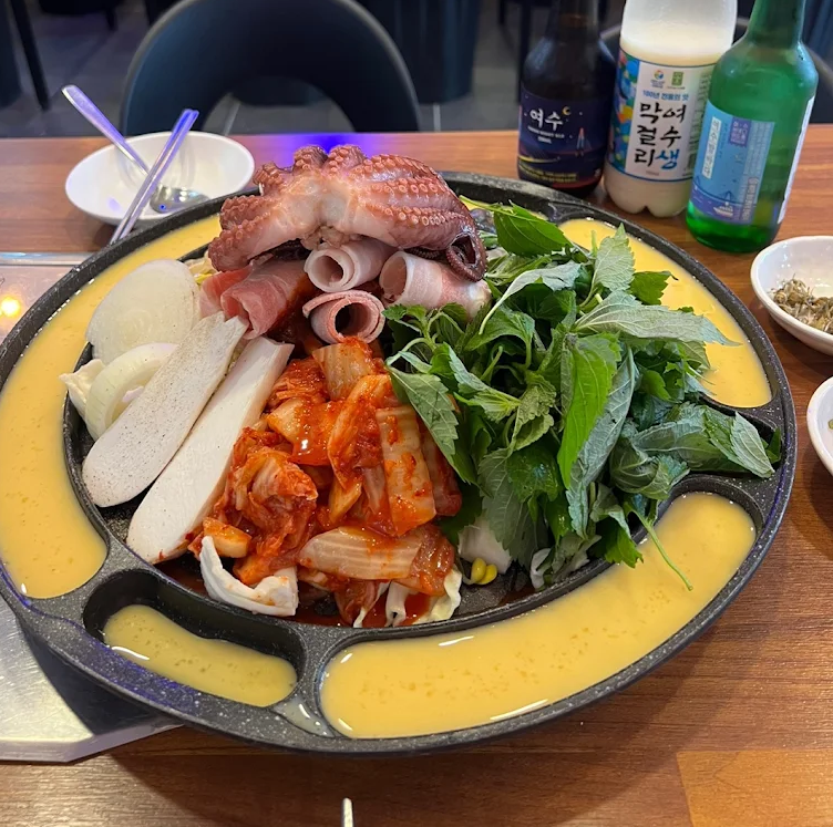 여수의 마지막 저녁은 맛있는 해산물 요리로 가득 차 있었습니다. 바다와 가까운 이 점에서, a지금까지 경험한 다양한 요리들 중에서 여수의 대표 음식인 돌문어삼합을 선택했습니다. 고소한 문어와 신선한 채소의 조화는 잊지 못할 맛이었습니다. 저녁 식사를 마친 후, 바다 전망이 멋진 장소에서 특별한 순간을 즐겼습니다.