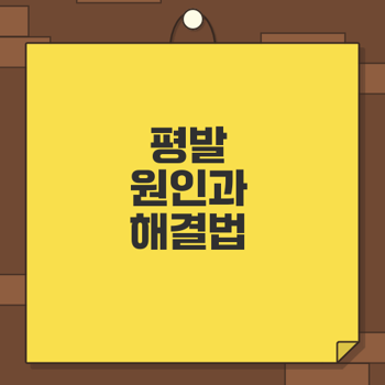 - 후천성 평발: 잘못된 신발 선택, 과도한 체중, 불균형한 걷는 습관 등이 원인이 되어 후천적으로 발생할 수 있습니다. 후천적인 평발은 우리가 일상생활에서 신경쓰지 않는 작은 습관들이 크게 작용하는 경우가 많습니다.