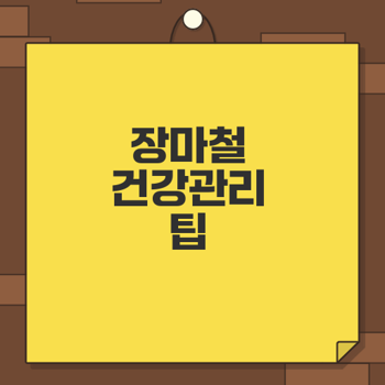 장마철의 건강 리스크를 인지하고 예방하기 위한 중요한 수칙을 살펴보세요. 중장년층이 특히 주의해야 할 건강관리 팁을 제시합니다.≡ 목차 장마철 건강 리스크 이해하기 습도와 질병의 관계 면역력 저하 및 그 영향 정신건강과 기분 변화 실내 습도 관리 방법 제습기와 에어컨 활용법 곰팡이 방지를 위한 효과적 방법 쾌적한 실내 환경 유지하기 일상 속 개인 위생 관리 손 씻기와 감염 예방 절차 옷과 침구 청결 유지하기 마스크 착용의 중요성 영양과 면역력 강화 식단 비타민과 발효식품 소개 예방할 음식과 피해야 할 음식 균형 잡힌 식사 습관 유지하기 실내 운동과 활동의 중요성 홈트레이닝의 장점 스트레칭과 요가 추천 혈액순환과 면역력 상승의 연관성 스트레스 관리 및 정신 건강 햇볕..