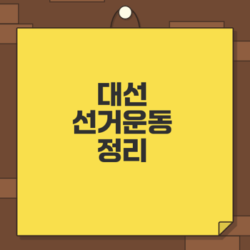 대선 선거운동기간은 유권자의 현명한 선택과 후보자의 효과적인 전략에 필수적입니다. 이 가이드를 통해 중요한 규정과 행동을 이해해 보세요.≡ 목차 선거운동기간 개요와 의미 대선 선거운동기간의 정의 유권자와 후보자의 역할 공정한 경쟁을 위한 규제 법적 근거와 규정 공직선거법 이해하기 선거운동의 정의와 예외 유권자의 투표권 허용되는 선거운동 활동 정기적 선거 공보물 배포 온라인 매체 활용 유권자와의 직접 소통 금지되는 활동과 제한 기부행위의 엄격함 집회 제한과 출판기념회 금지 호별 방문의 법적 제재 위반 시 처벌 내용 기부행위로 인한 형사처벌 모임 개최에 따른 처벌 위반 시 구체적 벌금과 징역형 자주 묻는 질문과 답변 정치인과 일반 시민의 선거운동 인터넷 활용의 법적 ..